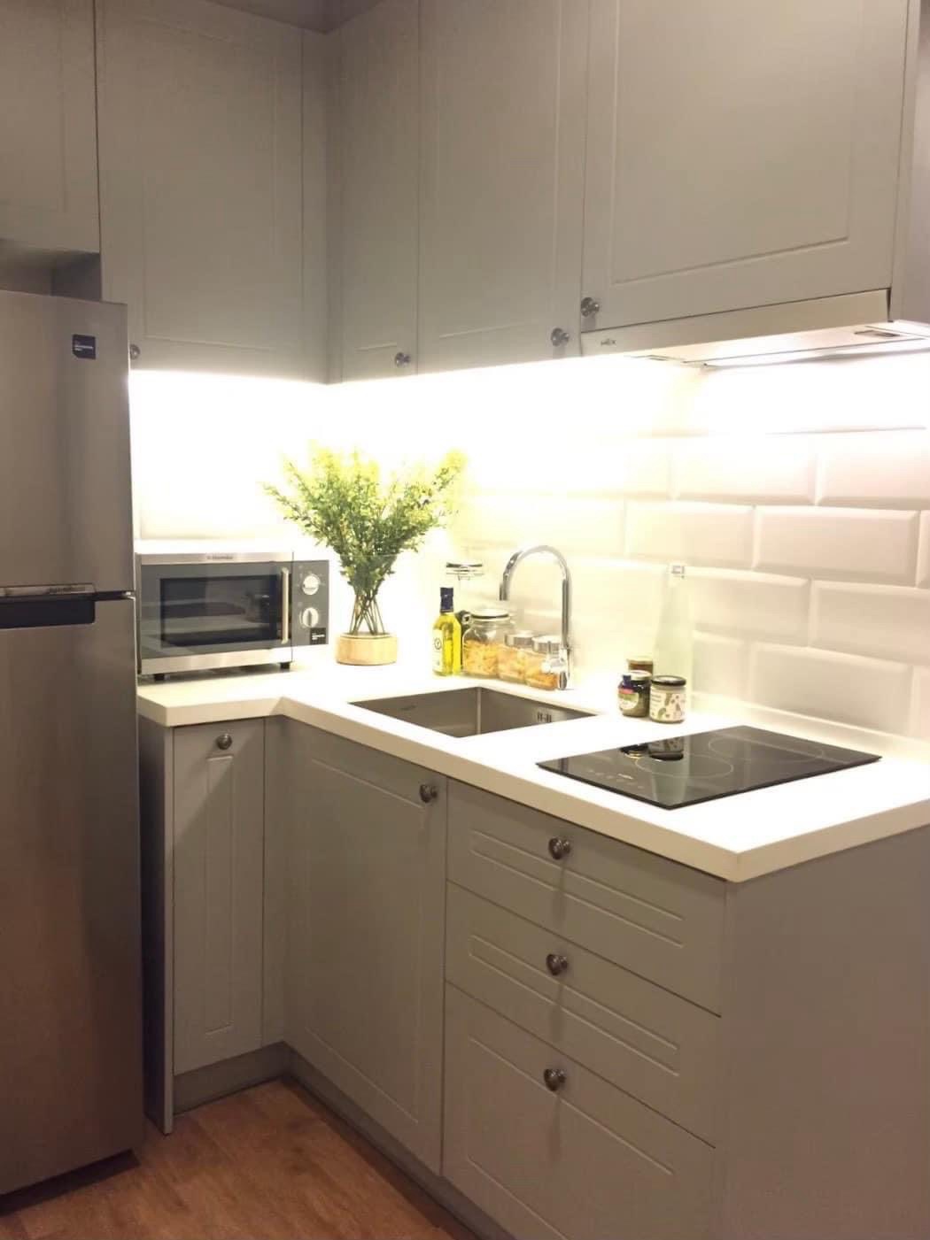 Corner room, city view >> Studio room, built-in modern, classic style, complete furniture and electrical appliances: bed and mattress with bedding, wardrobe, sofa, dining table and chair, office table and chair, TV shelf, locker and shoe cabinet, kitchen cabinet, washing machine, air conditioner, TV, refrigerator, microwave, water heater, electric stove and hood, Digital Door Lock