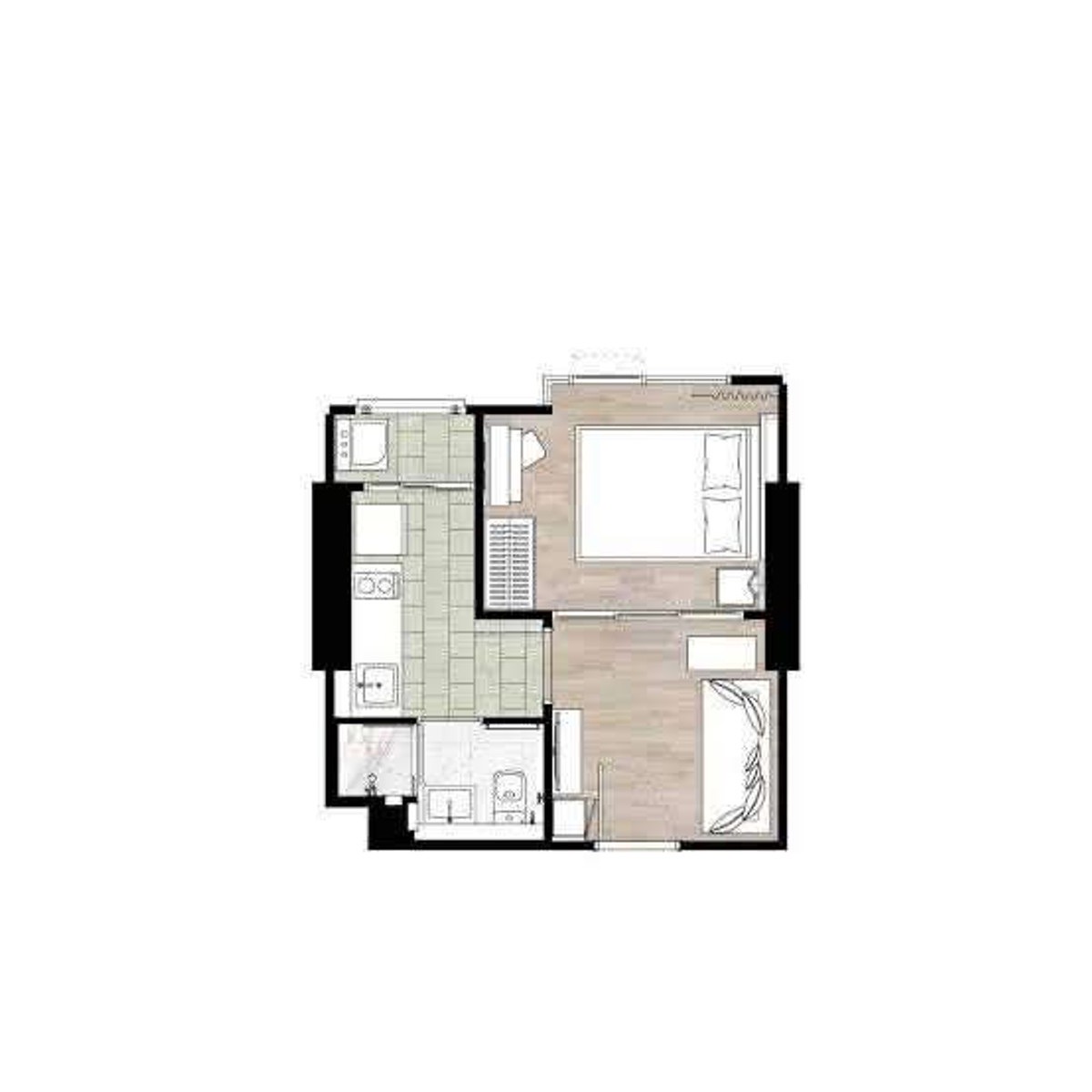 One-bedroom, one-bathroom condo in the CIELA Sripatum project.