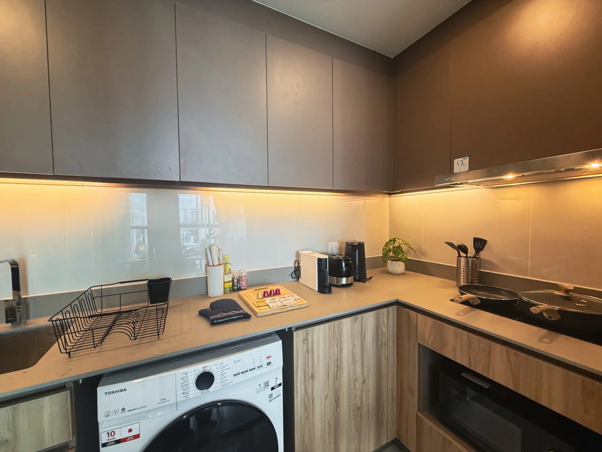 🌿 Health & Comfort • UV-cleaned sofa & mattress + HEPA PM2.5 air purifier for healthier living • King & Queen & Twin-sized bed with premium linens and blackout curtains • In-unit washing machine for easy laundry