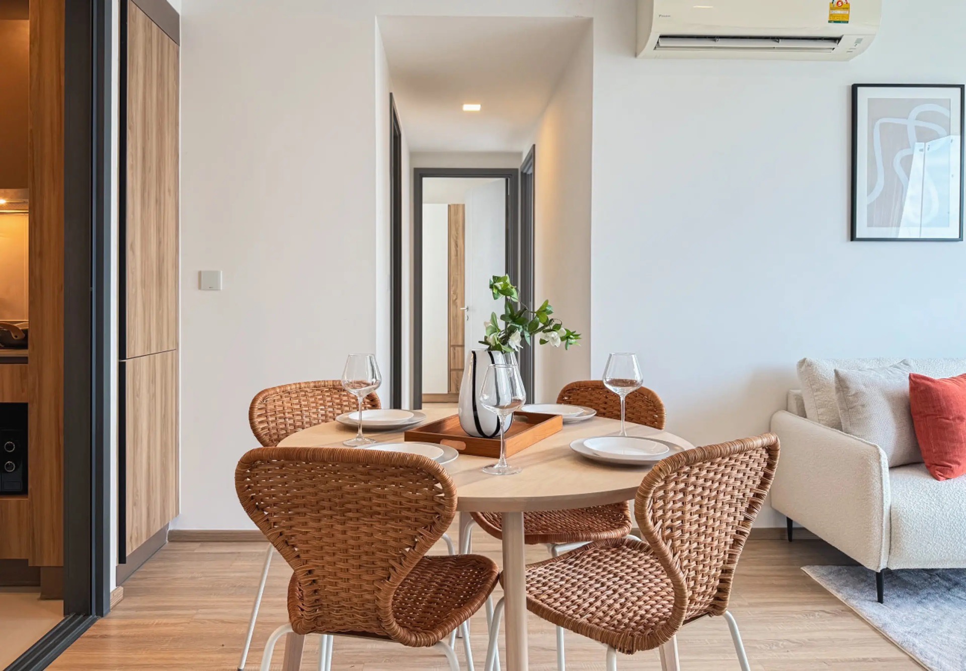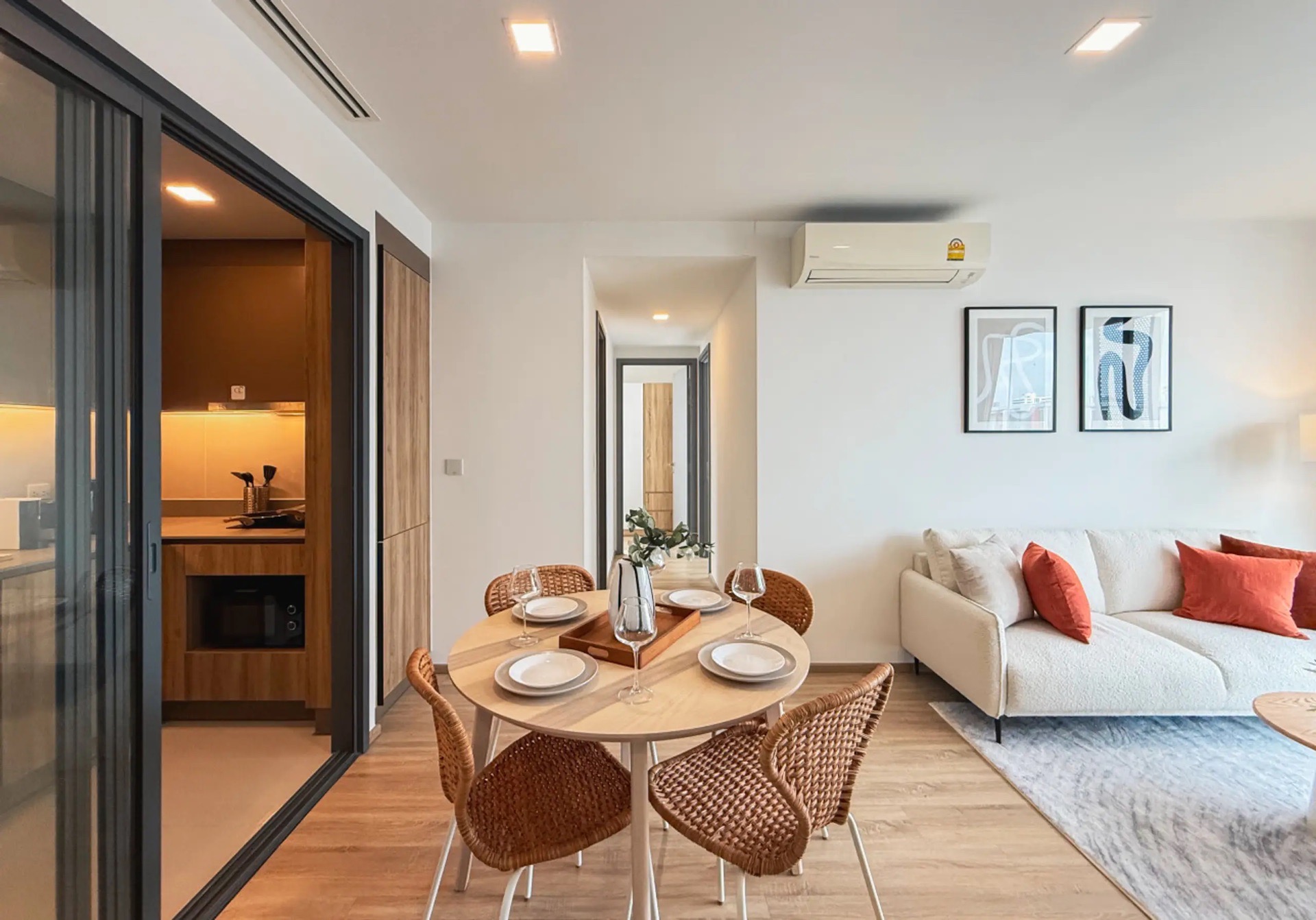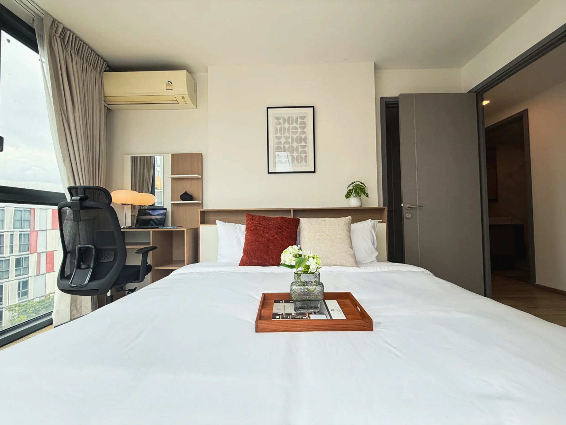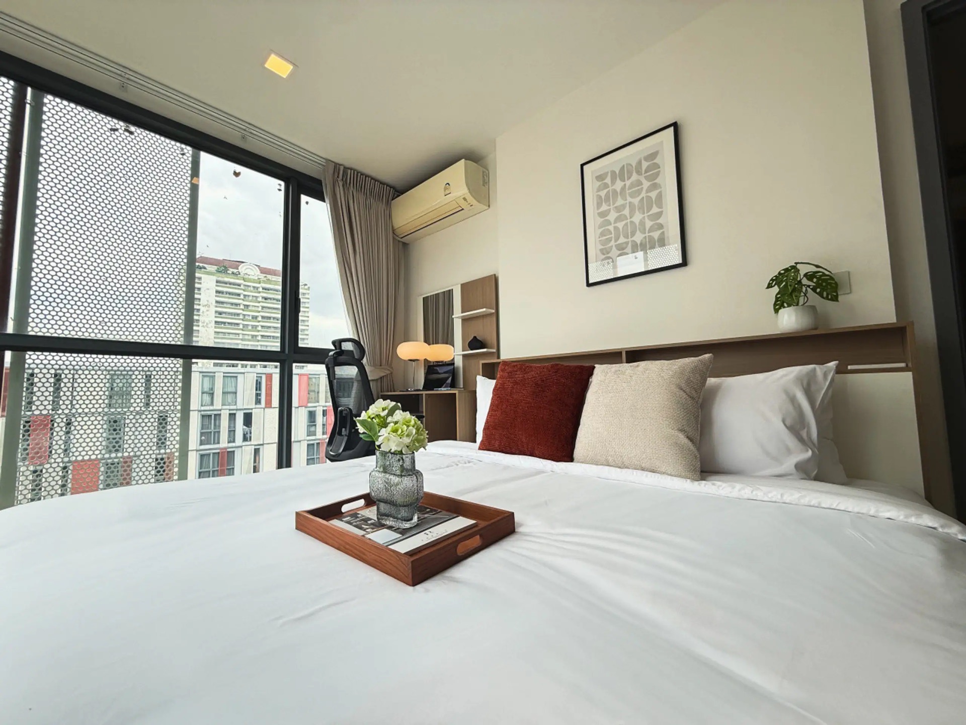 Stay in one of Bangkok’s most vibrant areas, Ekkamai. This 67 sqm apartment is ideally located from BTS Ekkamai. The location gives you quick access to shopping, dining, and Bangkok’s iconic landmarks. is designed for digital nomads and long-stay professionals, combining comfort, productivity, and wellness.