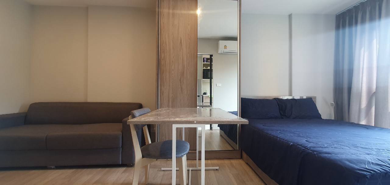 Plum Condo Sukhumvit 62 offers a modern urban living experience in the vibrant Bang Chak area. This studio unit, situated on the 3rd floor, provides a compact yet comfortable 22 sqm of living space, completed in 2022. Residents can enjoy access to the building's refreshing pool and well-equipped gym, perfect for relaxation and fitness.